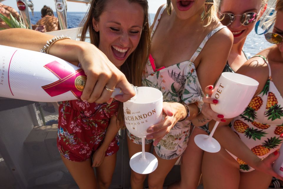 Step aboard from San Antonio harbor and sail along Ibiza’s dazzling coastline on a 6-hour sightseeing cruise with unlimited drinks, including beer, sangria, cava, soft drinks, and water.