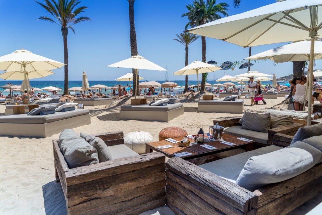 Playa d’en Bossa is Ibiza’s longest beach and a major hub for both daytime relaxation and nightlife. This area is famous for its upscale beach clubs, including Ushuaïa and Hi Ibiza, which host world-class DJs and events. During the day, Playa d’en Bossa offers numerous water sports, from jet skiing to paddleboarding, and a wide selection of beachfront restaurants. As the sun sets, the area transforms into one of Ibiza’s most dynamic nightlife scenes, attracting party-goers from around the world.